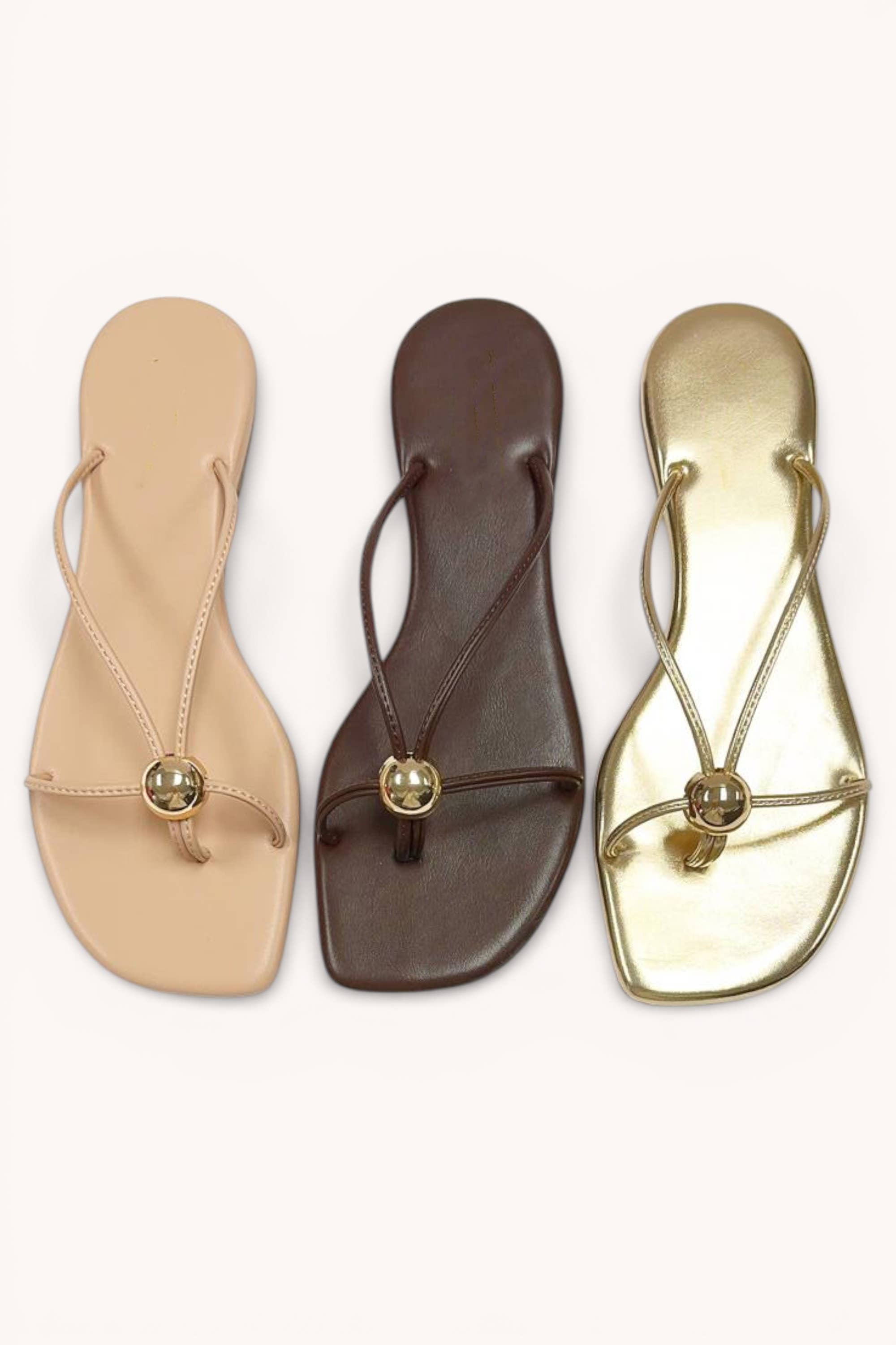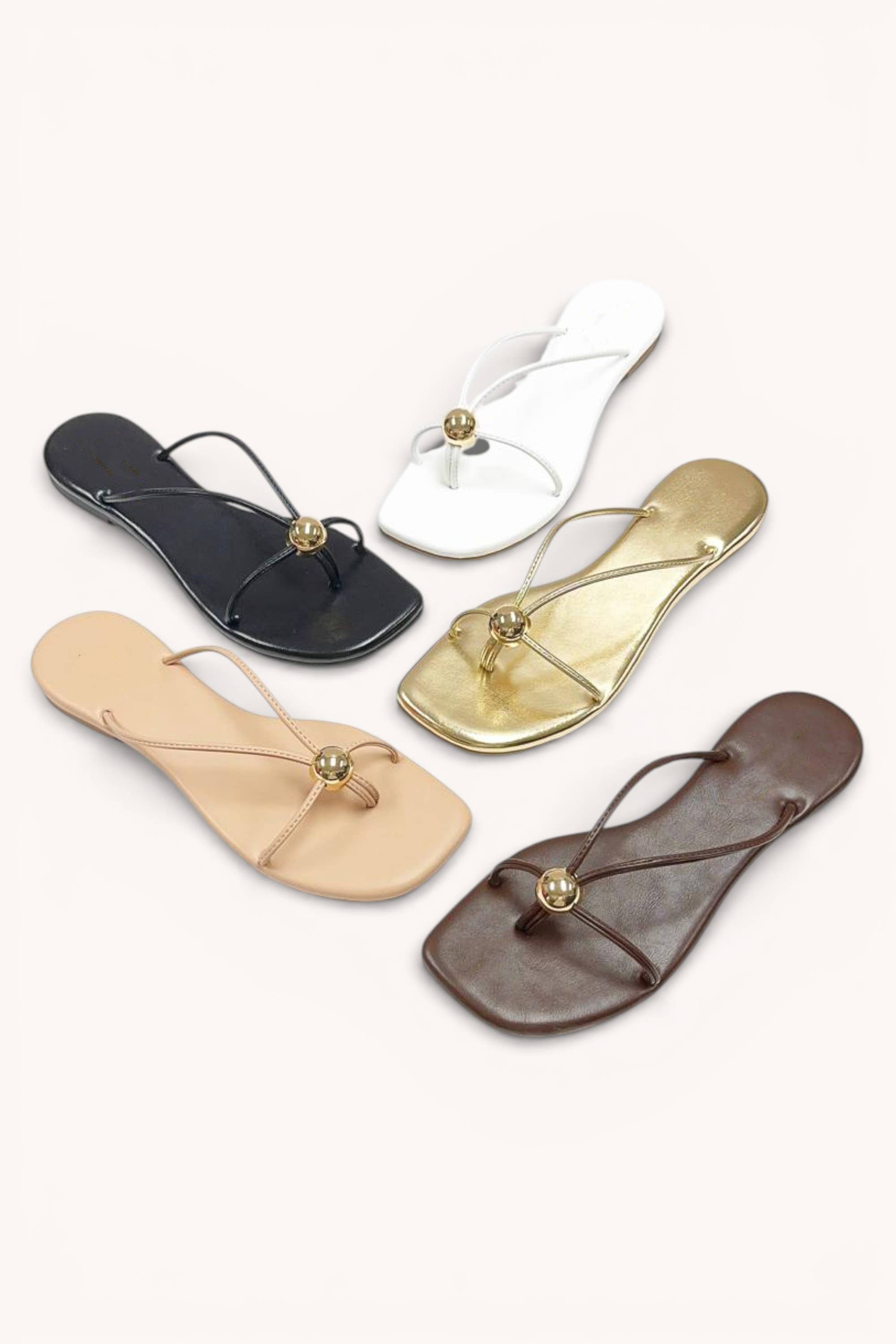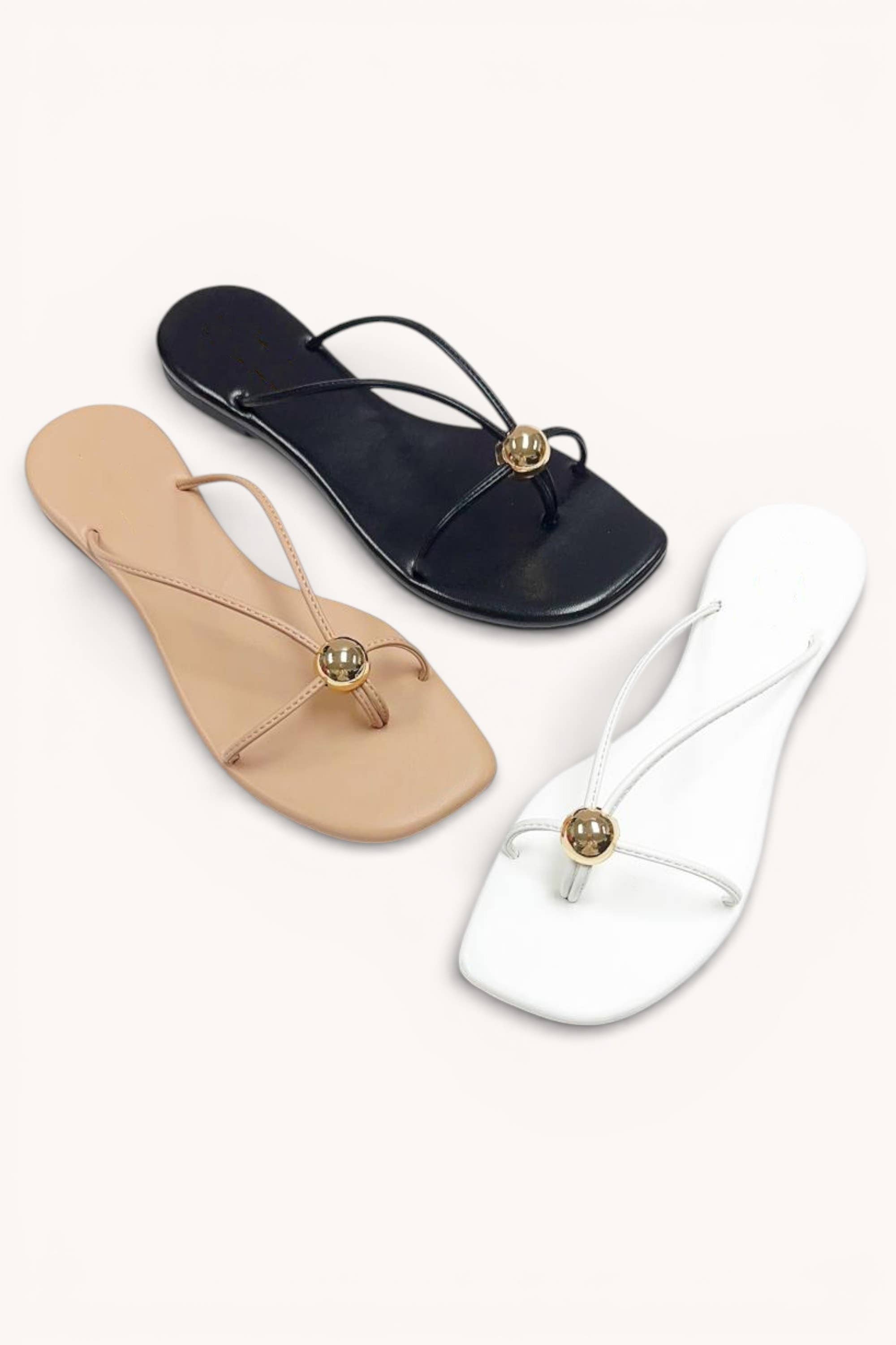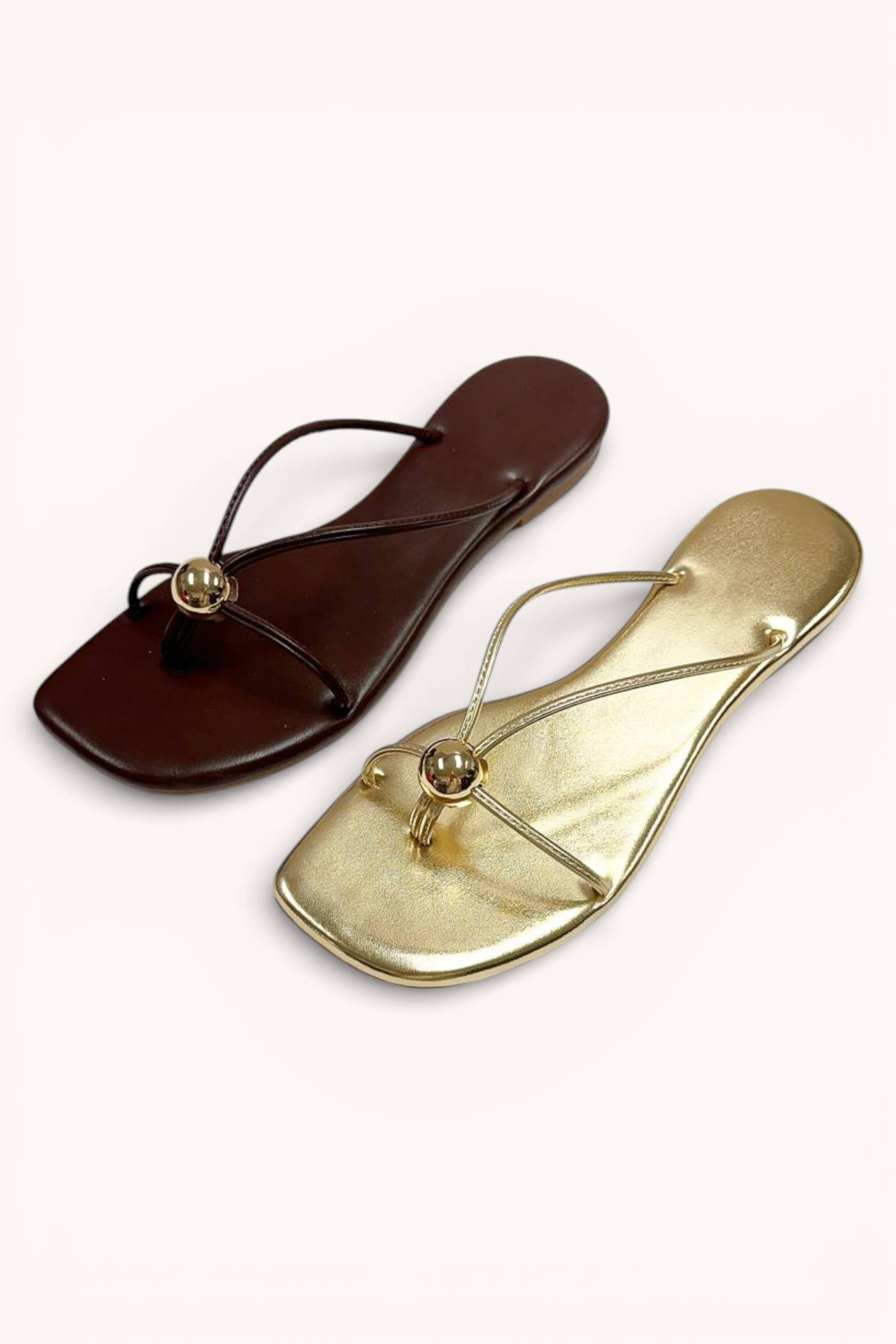-Gold Orb Detail: Sophisticated gold-tone spherical hardware as a focal point. -Slim Tubular Straps: Ultra-thin straps for a clean, "barely-there" aesthetic. -Asymmetrical Footbed: Ergonomically contoured sole following the foot's natural shape.