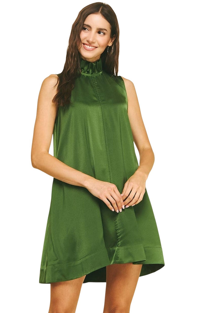 MINI DRESS WITH BACK TIE DETAIL -GREEN
