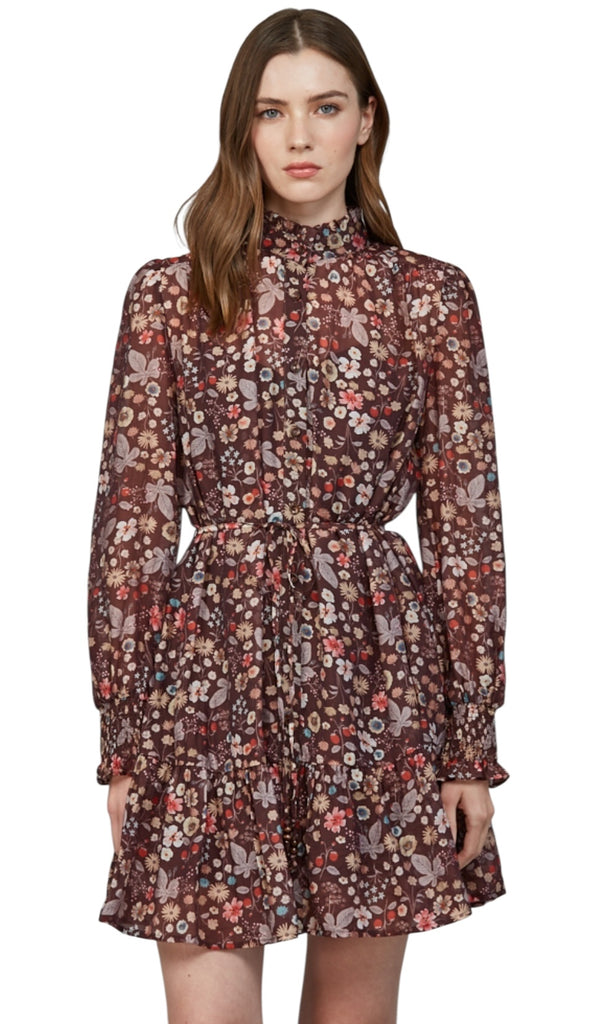 Brown Floral Mini Dress