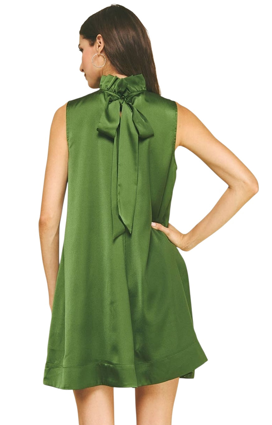 MINI DRESS WITH BACK TIE DETAIL -GREEN
