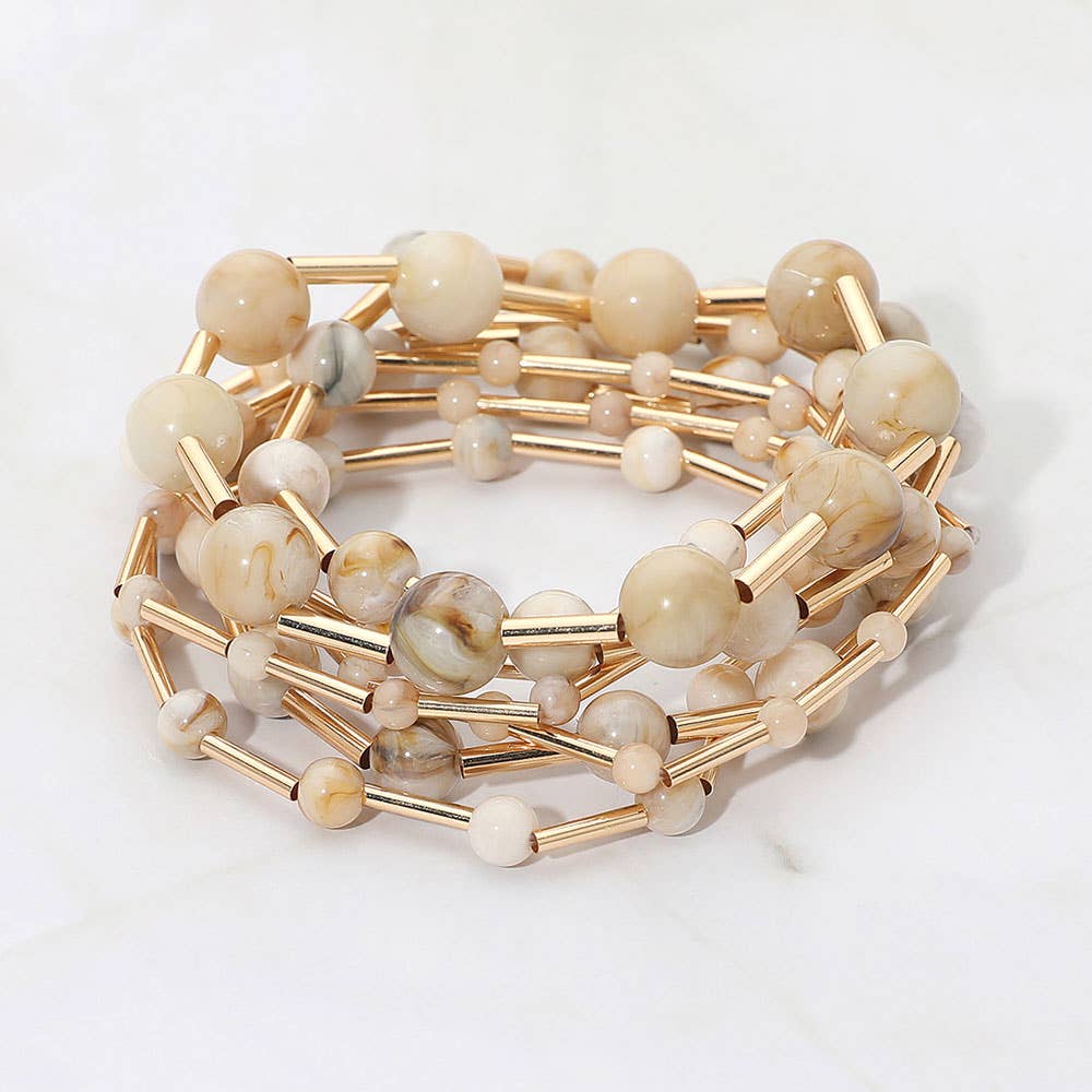 Beaded Layered Bracelets: Beige,Gold