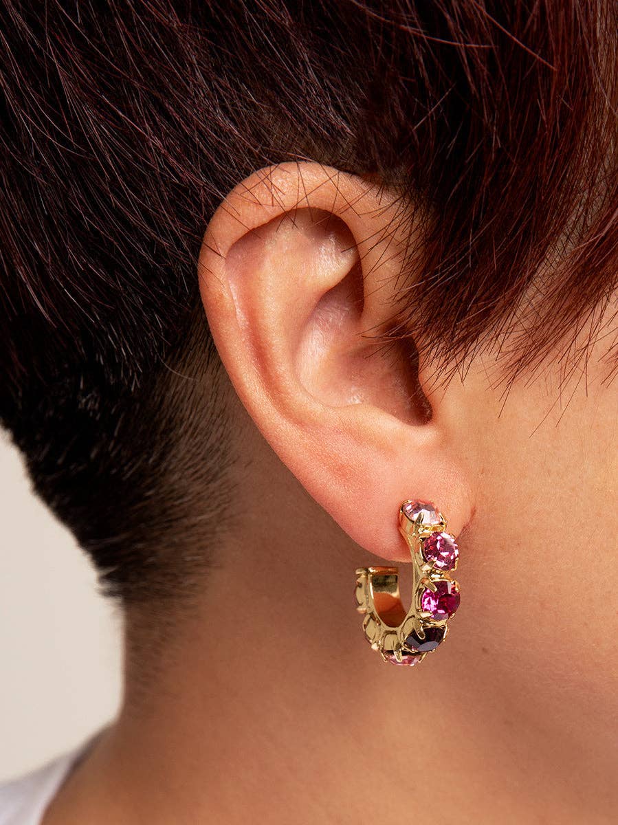 Colorful Crystal Hoops: H. Pink