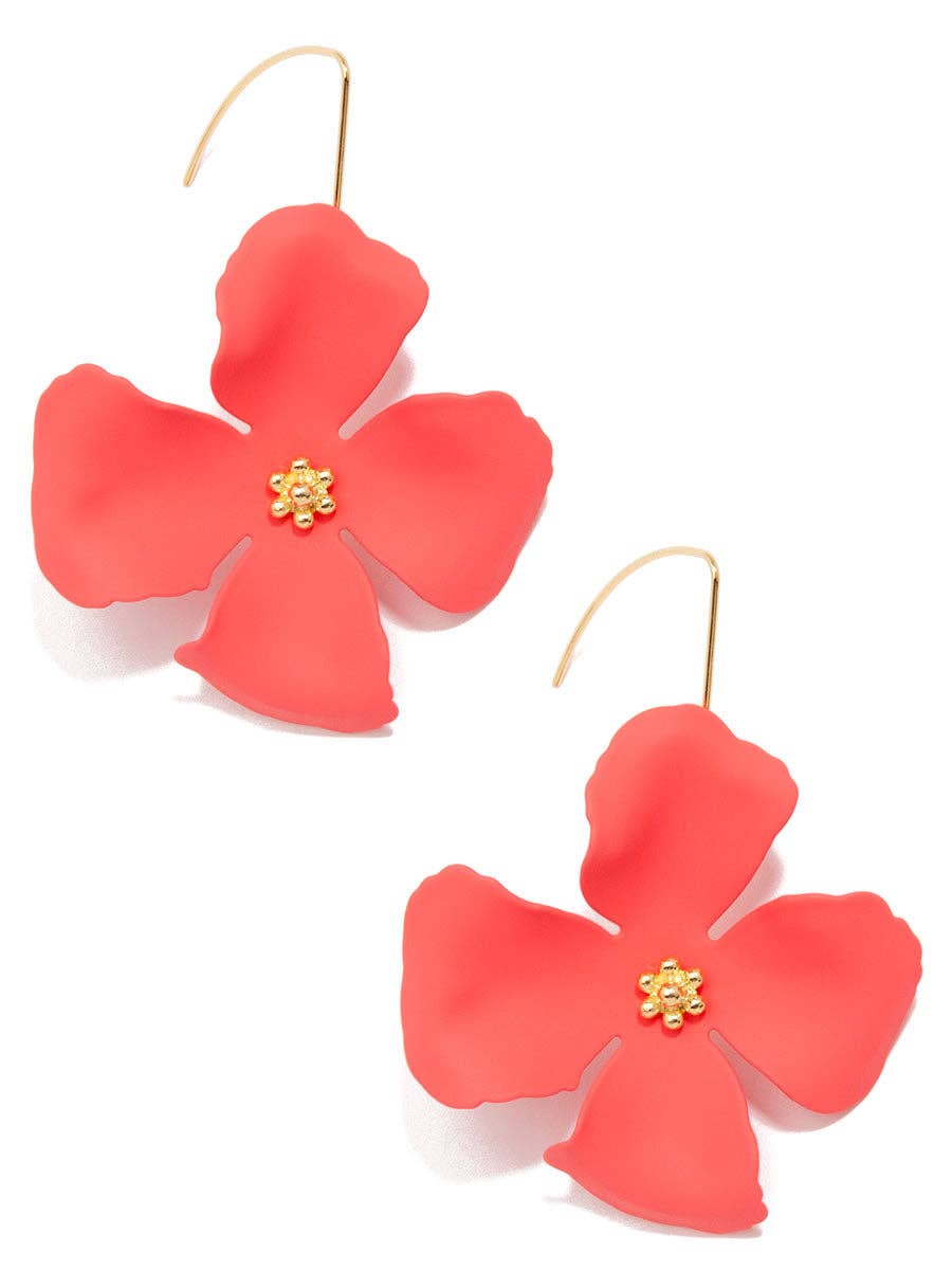Pull-through earring with a hand-painted matte, 4-petal flower drop.