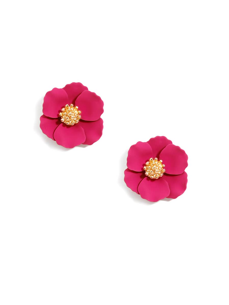 Mini Hand Painted Floral Stud Earring: Hot Pink