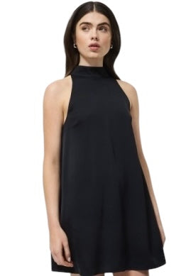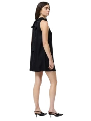 Easy, but elevated. The Ennis Satin Babydoll Dress keeps things light with a flowy satin silhouette and barely-there volume. The mock neck ties at the back with a soft bow, creating a look that feels polished, floaty, and low-maintenance glamorous.
