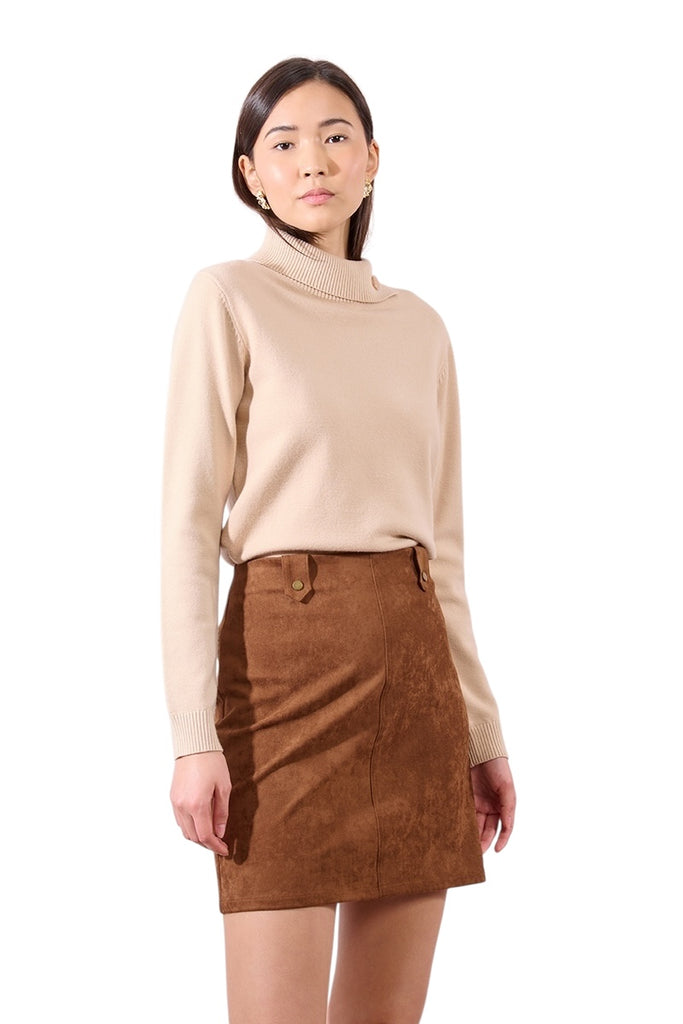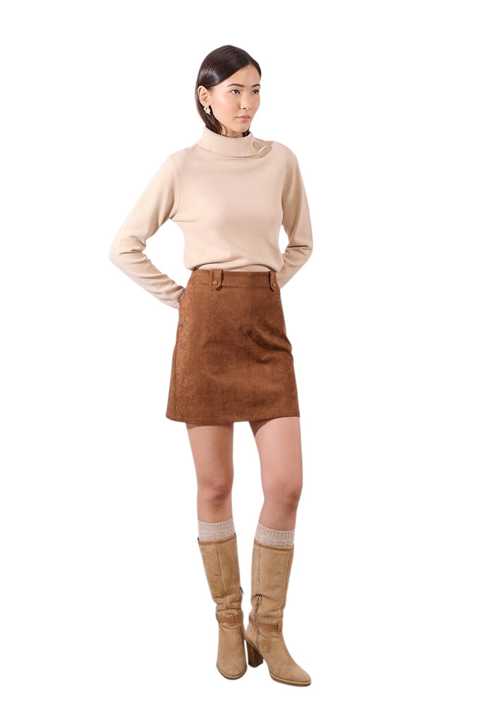 Faux Suede Mini Skirt. Brown.