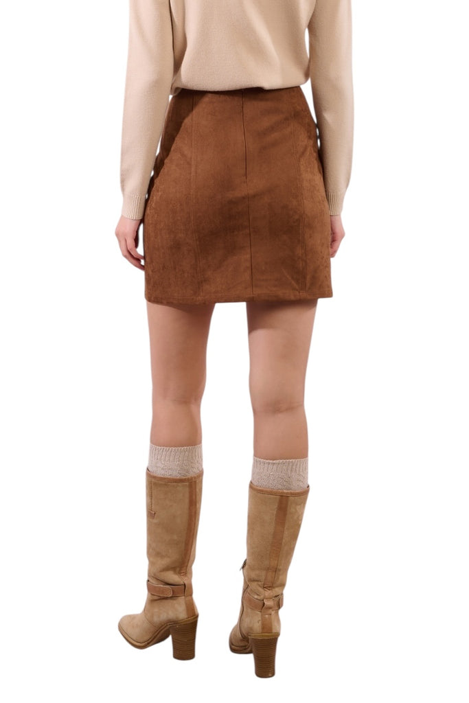 Faux Suede Mini Skirt- Brown