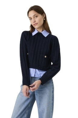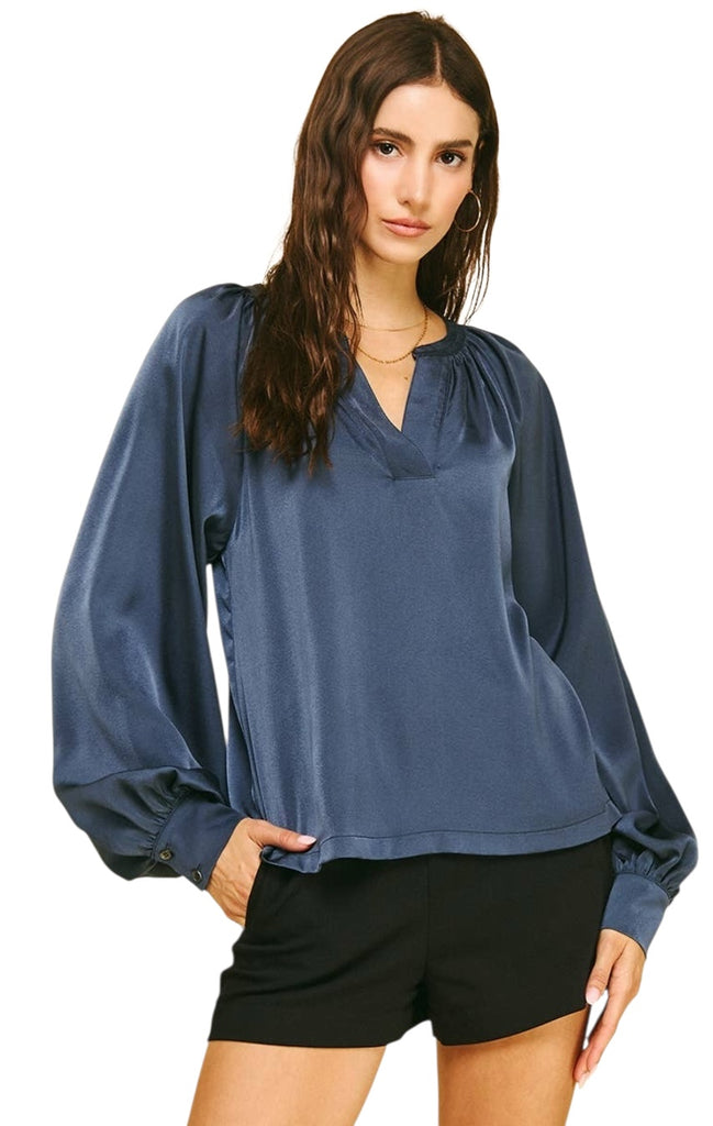 V-NECK WOVEN BLOUSE TOP : DEEP NAVY