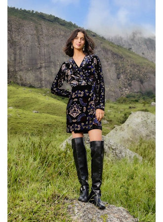 Farm Rio Arabesque Mix Sacrves black Mini Dress.