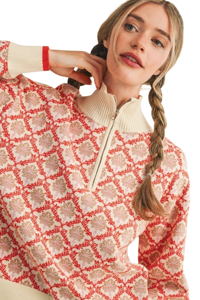 With this floral knit half zip pullover, putting together an adorable seasonal look is simple! This cozy sweater pullover (with a gorgeous floral knit design throughout) features a classic mock neckline, half zip, and comfortable drop shoulder long sleeves. Contrasting ribbed knit accents the neckline, cuffs, and hem. The relaxed bodice falls to the perfect length for all your high-waisted favorites!