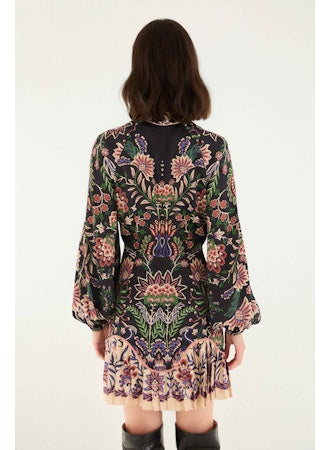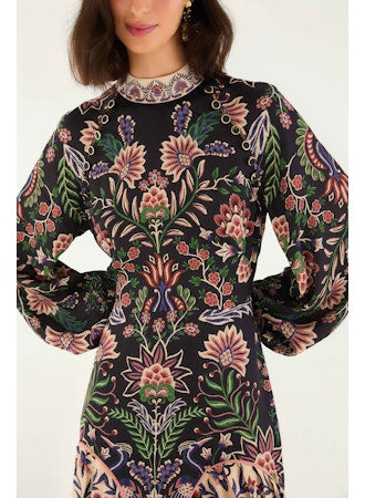 Captivate all eyes in this Marvelous Garden Black Mini Dress. With its long sleeves, mock neck, and pleated hem, this dress exudes effortless sophistication. Crafted by Farm Rio, this mini dress is a true wardrobe essential.