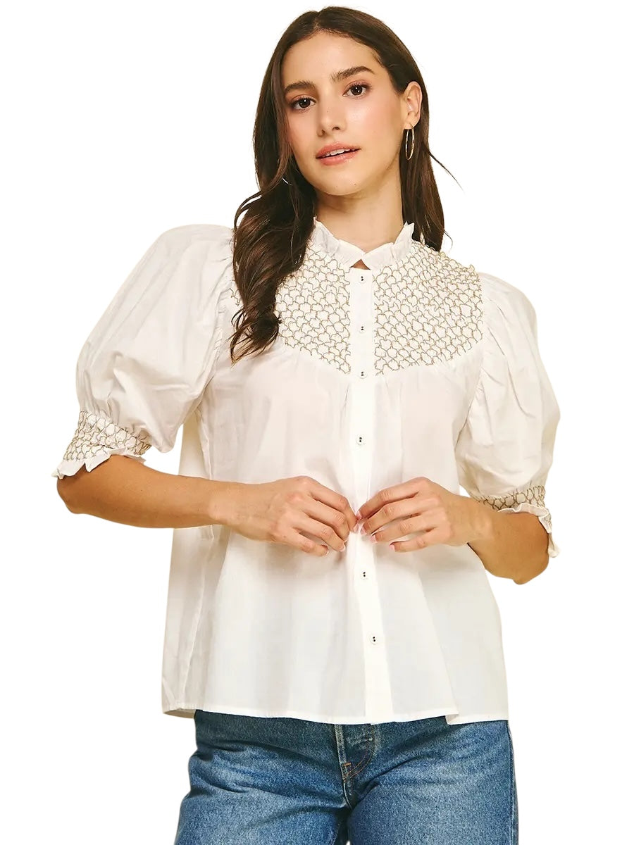 Smocked Puff Sleeve- White